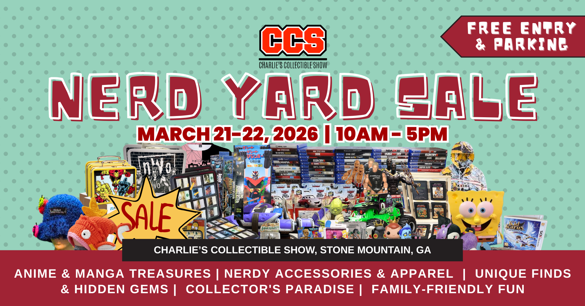 ๐ Location: Charlieโs Collectible Show, 6009 Memorial Dr Unit 14, Stone Mountain, GA