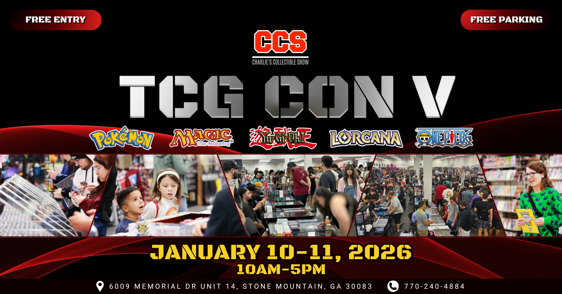 Kick off 2026 with the ultimate trading card celebration β two full days of buying, selling, trading, and connecting with collectors from across the Southeast! Whether youβre chasing that PSA 10, hunting down your next binder flex, or just soaking in the hype with friends β CCS TCG Con V is where the next chapter of your collection begins.