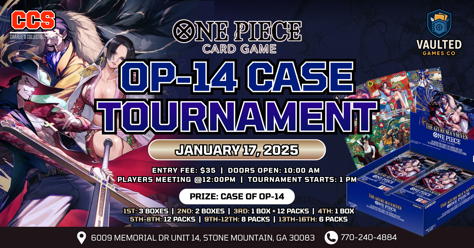 One Piece Set OP-14 has landed, and Vaulted Games is kicking it off with a Case Tournament you won’t want to miss. Bring your best deck and battle it out with other top players in the area.