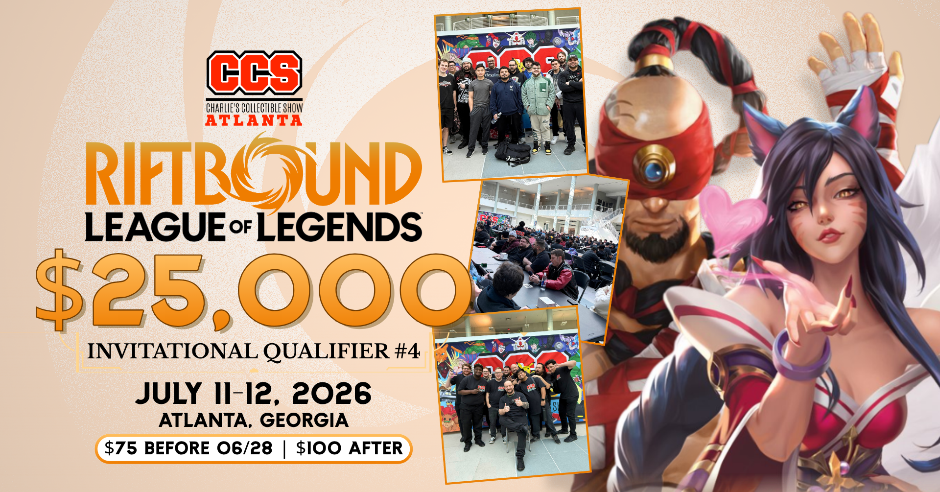 CCS $25,000 Riftbound Invitational Qualifier #4 Jul 11 CCS $25,000 Riftbound Invitational Qualifier #4 July 11 @ 9:00 am - July 12 @ 5:00 pm